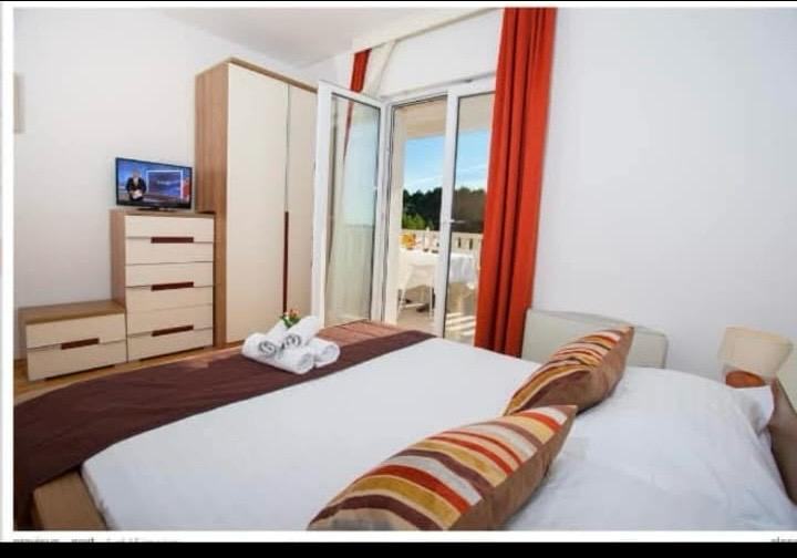 Odmah je useljiv te nije potrebna nikakva vrsta renovacije. Stan se sastoji od dnevnog boravka s kuhinjom, kupaonice, dvije spavaće od kojih je jedna s pripadajućom kupaonicom i balkona s pogledom na more