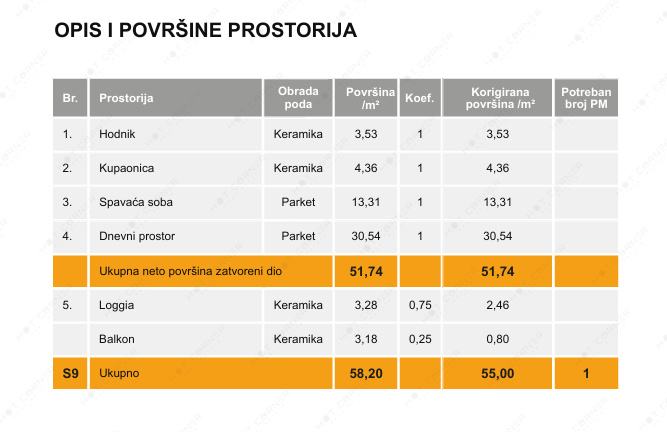 Stan 55 m² na 1. katu s lođom, balkonom i garažnim mjestom (prodaja)