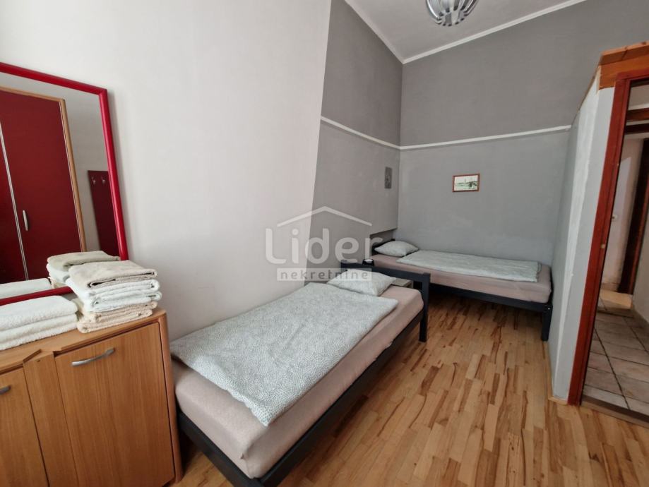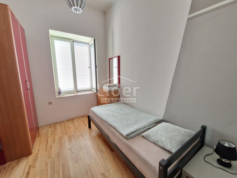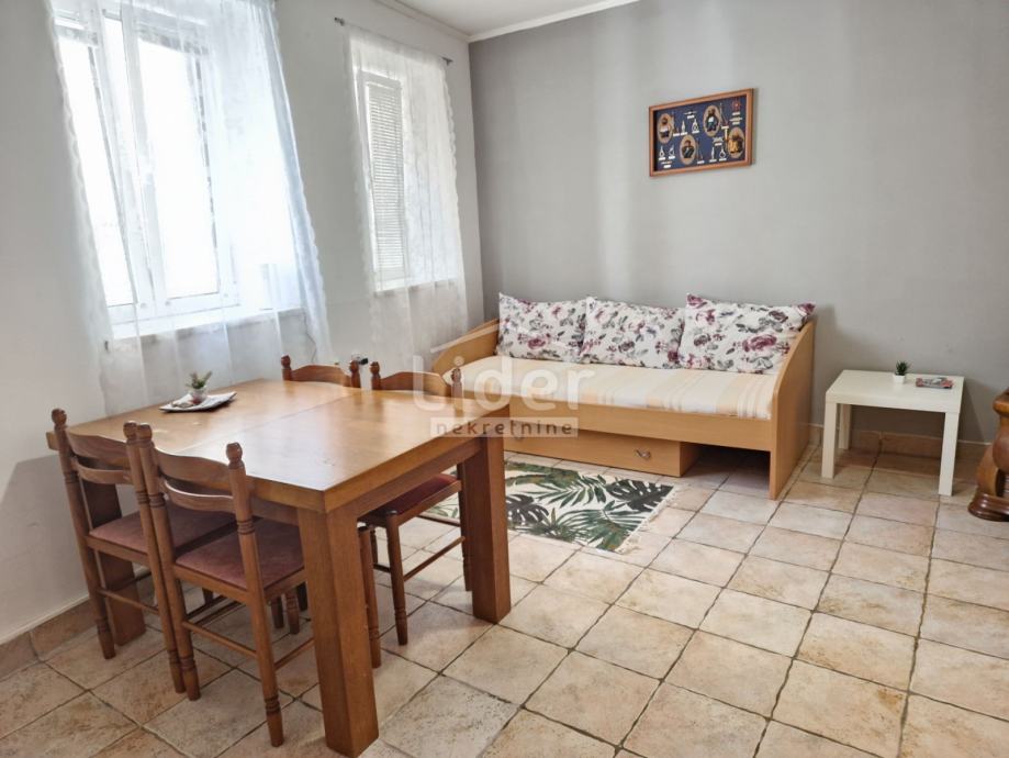 U starom dijelu grada Raba u jednoj od ulica koje spajaju Srednju i Gornju ulicu prodaje se stan. Nalazi se na prizemlju, ali ne sa ulične strane tako da ima mir i privatnost .