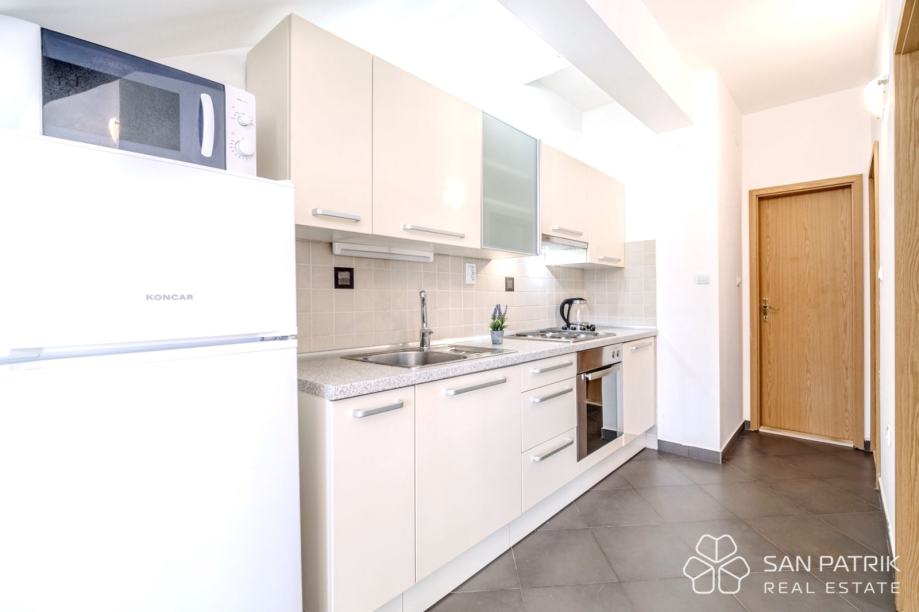 Zgrada je izgrađena 2007. godine i sastoji se od 6 funkcionalnih dvosobnih apartmana. Svaka jedinica ima vlastito parkirno mjesto, vanjske prostore i otvoren pogled na more. Apartmani su potpuno namješteni, klimatizirani i spremni za korištenje bez dodatnih ulaganja.