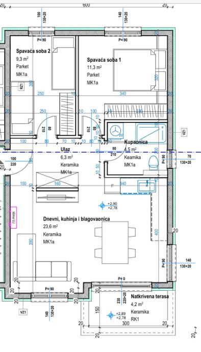 Stan ima 55 m² neto stambene površine te se sastoji od: