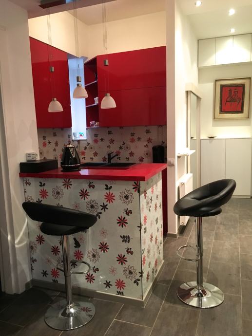The apartment consists of a big living room of 40m2, bedroom with built-in wardrobes, kitchen and bathroom with toilet. Gas central heating, underfloor heating in the living room. Fast optic internet.