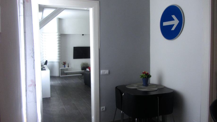 Stan se sastoji od dnevnog boravka od 40tak kvadrata, spavaće sobe s ugrađenim ormarima duž sobe, kuhinje sa šankom i kupaonice s WCom. Plinsko etažno grijanje, podno grijanje u dnevnom boravku. Brzi optički internet.