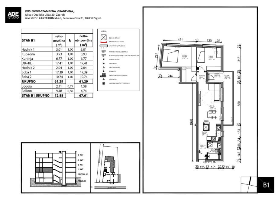 Stan se nalazi u sklopu projekta novogradnje. U blizini Trešnjevačkog placa, na adresi Ozaljska 20, započeli smo sa gradnjom stambeno-poslovnog objekta sa 14 stanova i 1 poslovnim prostorom, raspoređenima u 5 nadzemnih etaža te jednom podzemnom etažom.