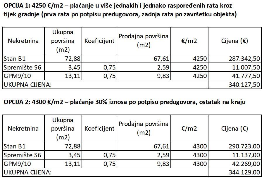 4250 - 4300 €/m2, ovisno o načinu plaćanja, detaljnije opcije pogledajte u PDF dokumentu u oglasu.