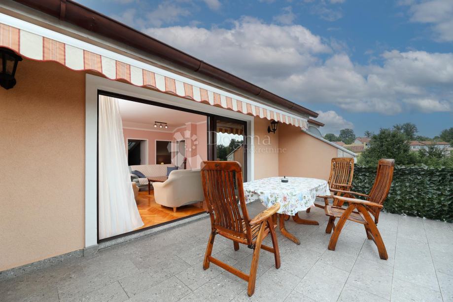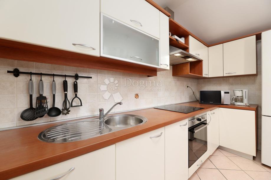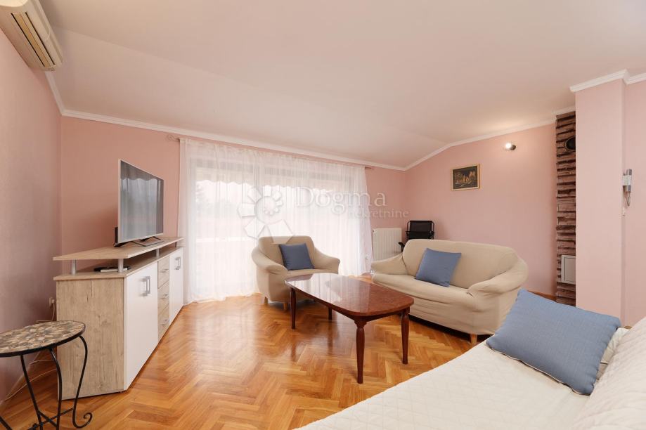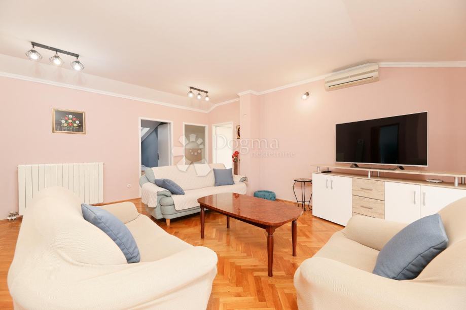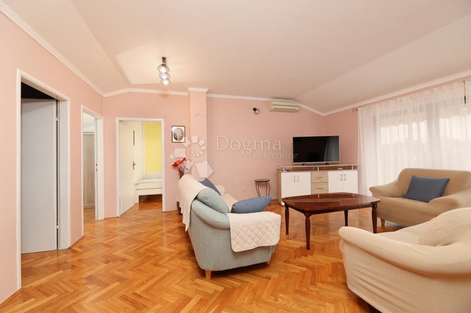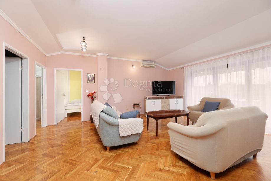 Površina stana iznosi 120 m², a sastoji se od tri prostrane spavaće sobe i velikog dnevnog boravka.