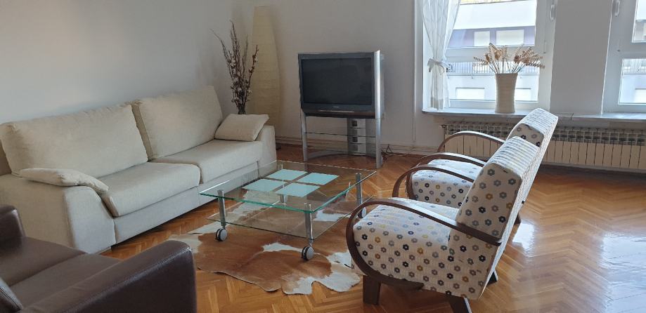 Stan je kvalitetno i potpuno namješten i ima protuprovalna vrata, te kvalitetne uređaje: električna pećnica, plinska ploča za kuhanje, perilica suđa, mašina za pranje rublja, frižider sa ledenicom.
