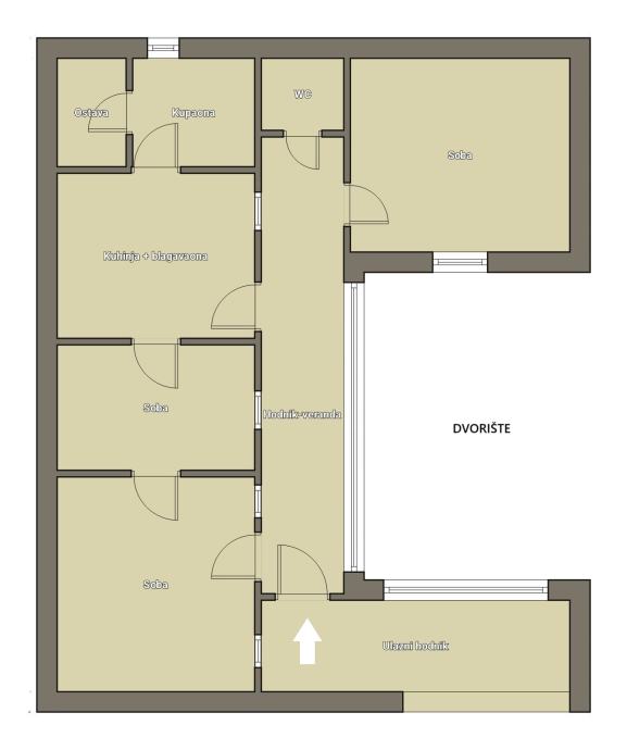 kuhinja sa blagavaonom, 3 sobe, wc, kupaona, ostava, hodnik
