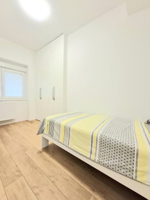 Stan ima tri spavače sobe, dvije manje, uz koje se nalazi jedna kupaonica sa WC-om i još jedan zasebni WC, te roditeljska soba sa svojom posebnom kupaonicom.