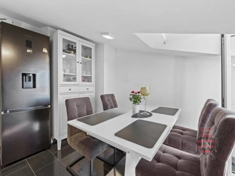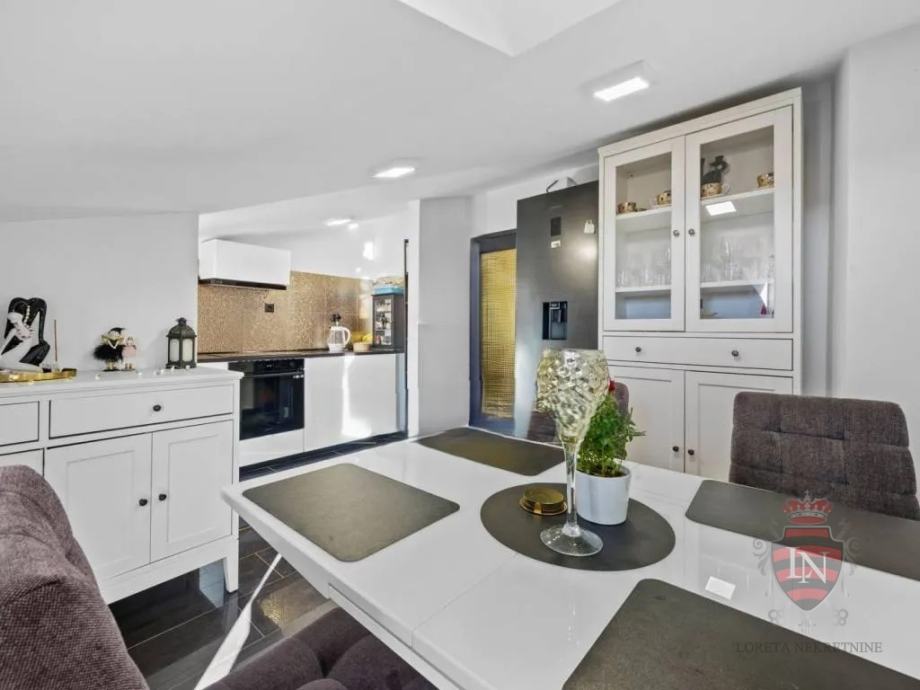 Nekretnina se ističe velikom terasom s prekrasnim pogledom na more te mirnim i privatnim okruženjem. U potpunosti renovirana, spremna je za useljenje, a raspored čini idealnu opciju za obiteljski život ili investiciju.