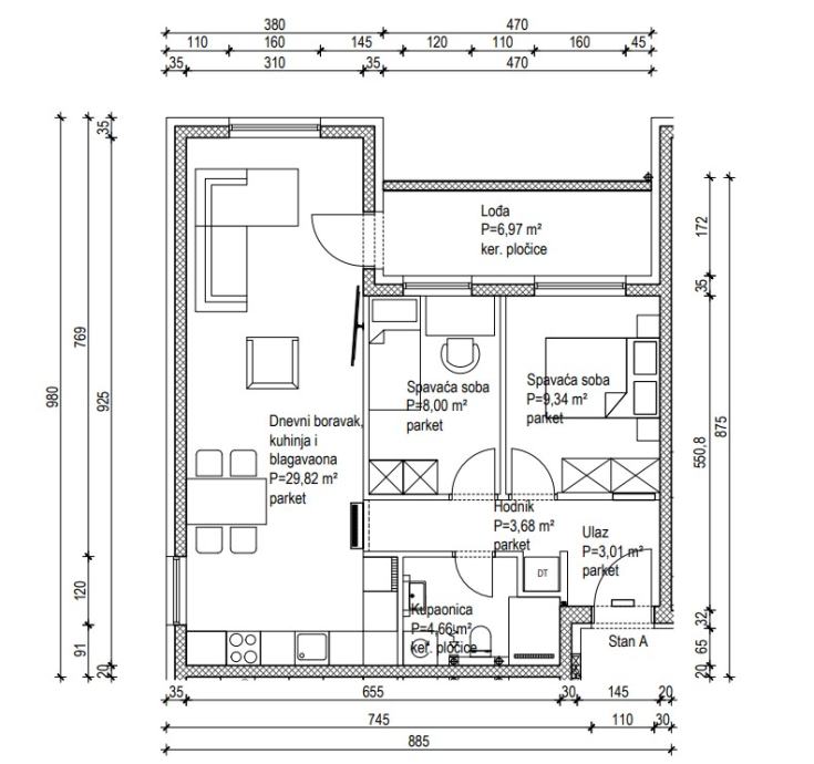 Uz stan je obavezna kupnja vanjskog ili garažnog parkirnog mjesta.