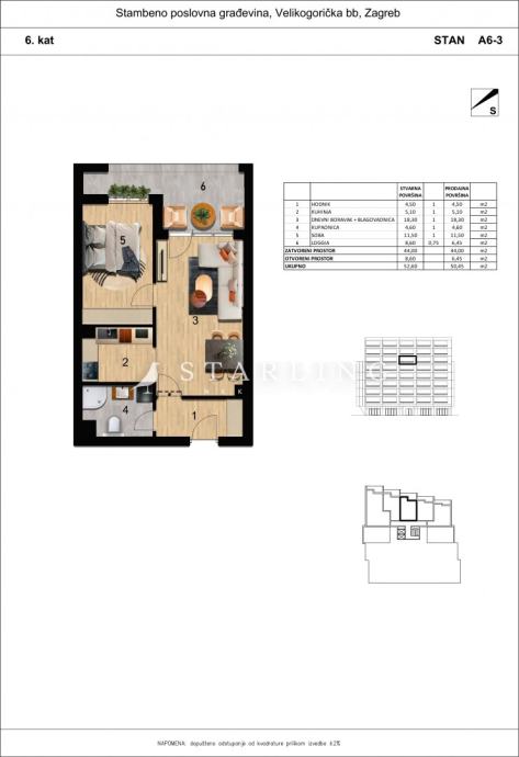 STAN A6-3, NOVOGRADNJA, PRODAJA, ZAGREB, BOROVJE, 50.45 m2, 2-soban
