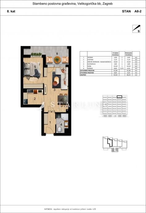 STAN A8-2, NOVOGRADNJA, PRODAJA, ZAGREB, BOROVJE, 48.35 m2, 2-soban