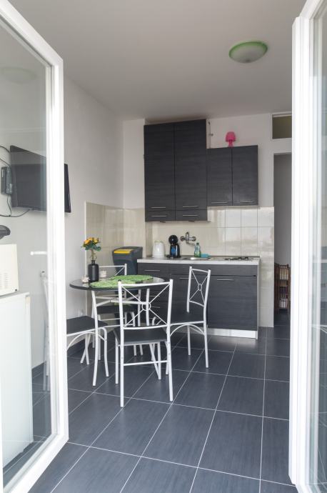 sastoji se od sobe, kuhinje s dnevnim boravkom, kupaonice i balkona sa pogledom na more.
