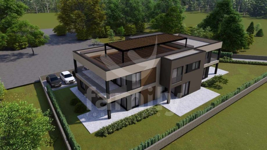 U jednom takvom naselju nalazit će se ovaj dvosobni stan u prizemlju u stambenoj zgradi sa pet stanova koja je u izgradnji. Sastojati će se od hodnika, dvije spavaće sobe, dnevnog boravka sa izlazom na lođu površine 9 m2, kuhinje s blagovaonom, kupatila sa stambenom površinom od 68 m2. Također će stanu pripadati vrt od 120 m2 s navodnjavanjem kao i spremište u prizemlju smješteno ispod stepenica. Stanu će pripadati jedno parkirno mjesto (s pripremom za punionicu automobila) i drugo spremište koje će se nalaziti van objekta.