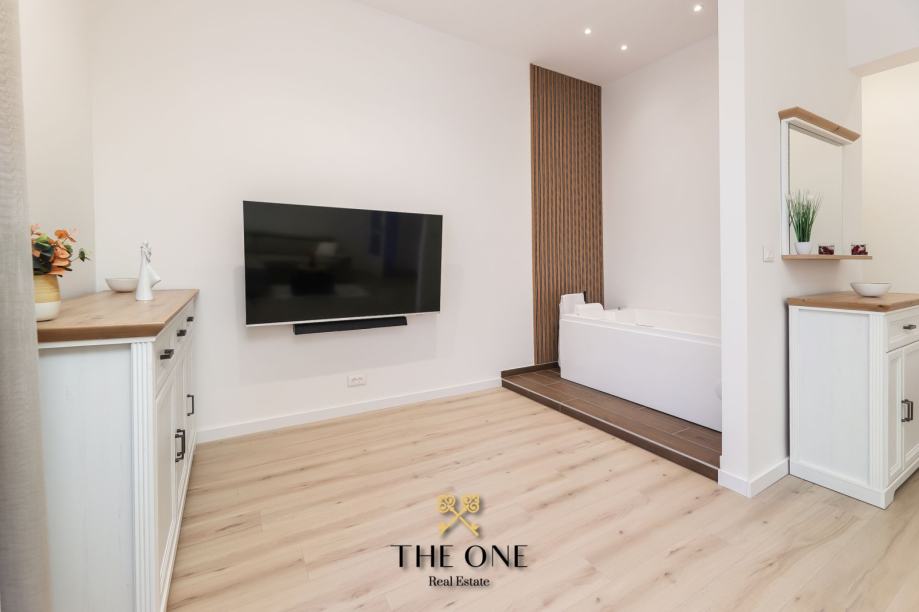 Stan se sastoji od prostranog predsoblja, ugodnog dnevnog boravka, moderne kuhinje s blagovaonicom, jedne prostrane spavaće sobe te kupaonice s walk-in tušom i podnim grijanjem. Grijanje i hlađenje dodatno je osigurano klima uređajem, čime je boravak u stanu ugodan tijekom svih godišnjih doba.