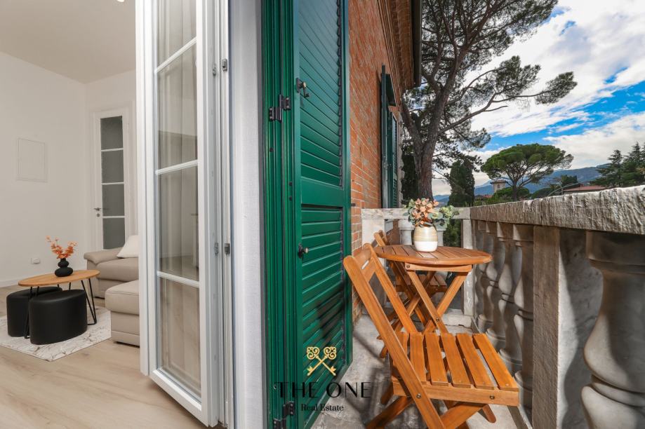Predivan jednosobni stan smješten na drugom katu secesijske vile, okružene uređenim mediteranskim vrtom, nalazi se u Opatiji. Stan pruža komfor modernog života uz šarm povijesne gradnje i nezaboravan pogled na more.