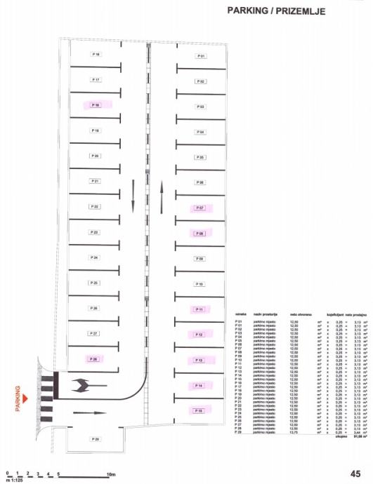 22 garažna parkirna mjesta na etaži podruma