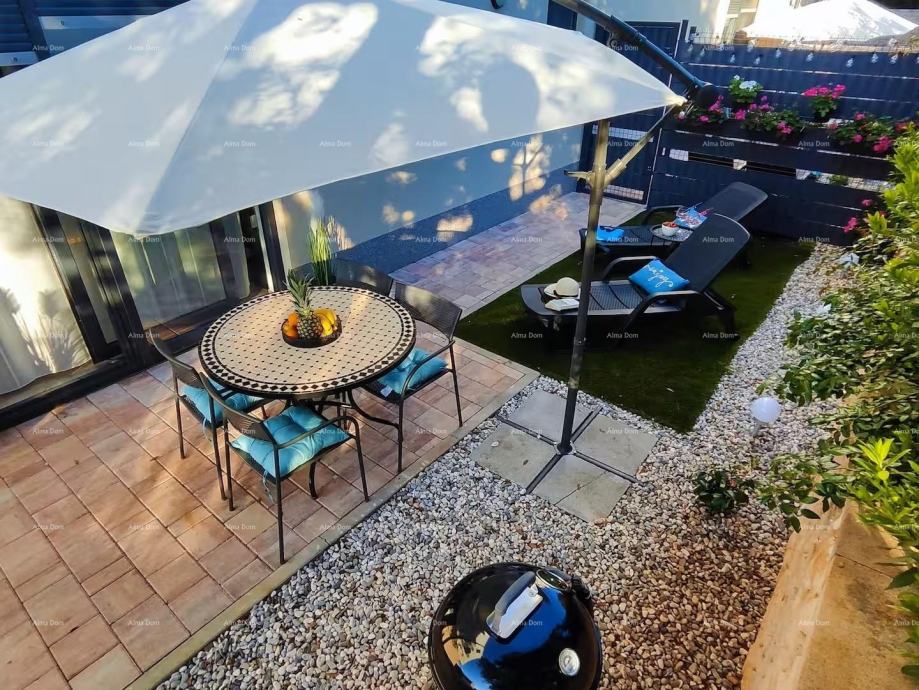 Ovaj prekrasan stan u Banjolama savršena je oaza za ljubitelje blizine mora i prirode. Smješten na prizemlju, prostire se na 44 m² i uključuje dvije spavaće sobe, prostrani dnevni boravak i modernu kuhinju. Uživajte u udobnosti podnog grijanja i klima uređaja, dok vam vrt nudi mogućnost opuštanja na svježem zraku. Udaljenost od centra i plaže je samo 200 metara, što čini ovu nekretninu idealnom za sve koji žele živjeti u mirnom, ali živahnom okruženju. Ovaj stan nudi savršen spoj funkcionalnosti i udobnosti.
