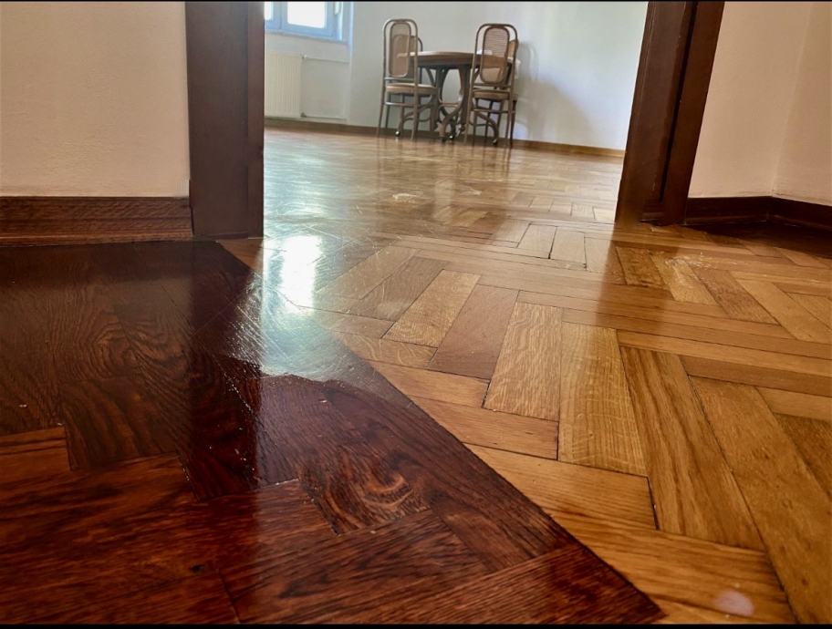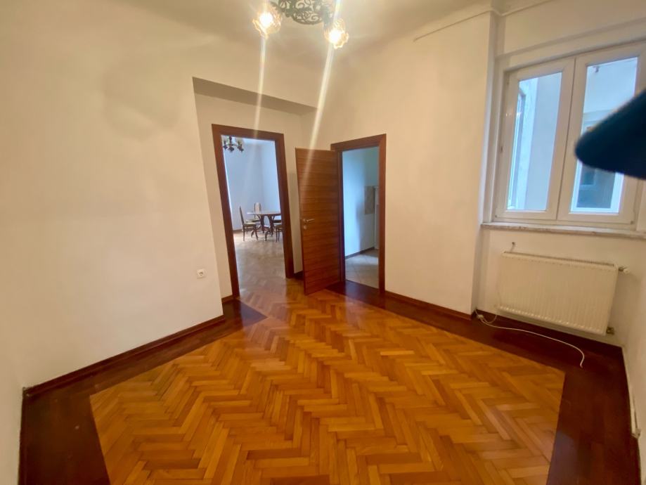Iznajmljujem nenamješten trosoban stan od 60 m² na prvom katu zgrade na Bauerovoj u četvrti Gornji Grad - Medveščak. Zgrada je iz 1937. godine, ukupno pet katova, s priključcima na gradski plin, vodovod i kanalizaciju.