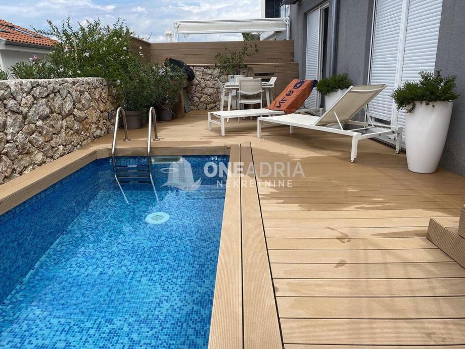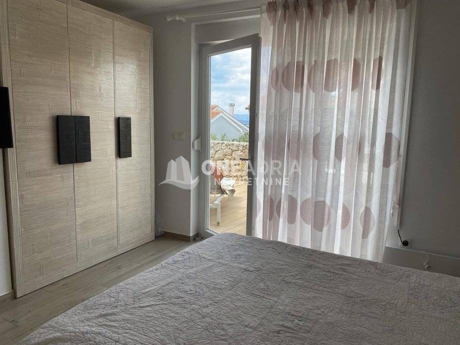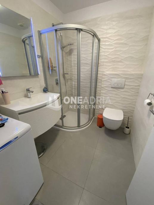 Odličan apartman na lijepoj lokaciji sa pogledom na more, stambene površine 70,60m2, sastoji se od dvije spavaće sobe, dnevnog boravka, kuhinje, kupaonice, hodnika terase na kojoj se nalazi bazen i sunčalište!!