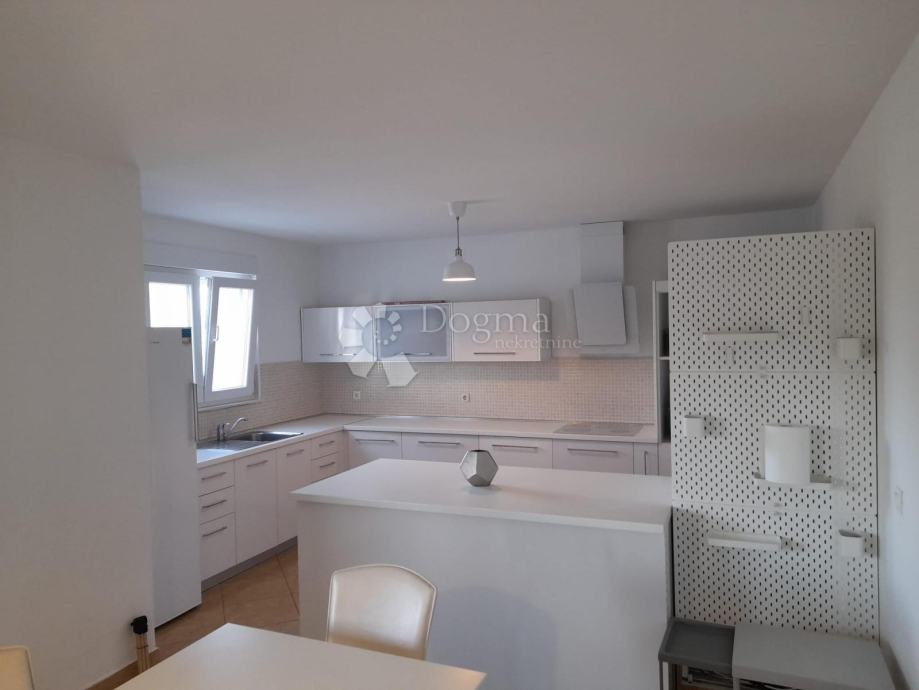 Kuhinja je opremljena visokokvalitetnim aparatima i modernim kuhinjskim elementima, pružajući savršen spoj funkcionalnosti i estetike.