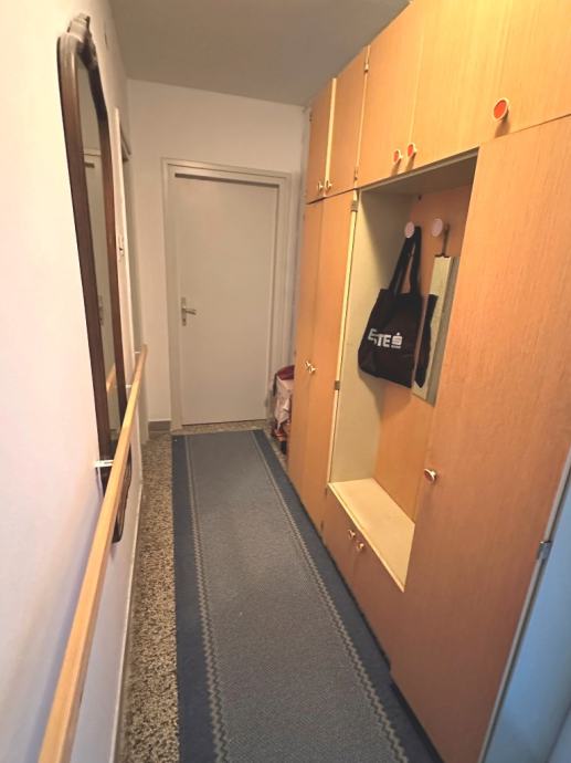 Stan se sastoji od jedne spavaće sobe, kuhinje sa blagovaonicom i špajzom/ostavom, odvojenog prostranog dnevnog boravka, kupaonice te male terase (izlaz iz blagovaonice). Na dvorištu (druga kat.čestica) se nalazi spremište/drvarnica oko 6m2 (nije uključeno u površinu stana). Stan nije renoviran ali je održavan i u dobrom stanju, vanjska stolarija je zamijenjena (PVC sa vanjskim griljama/škurima), parket u sobama je u dobrom stanju. Cijena 3.500eur/m2, ukupno 196.000,00eur. - cijena snižena na 178.000,00eur!!!