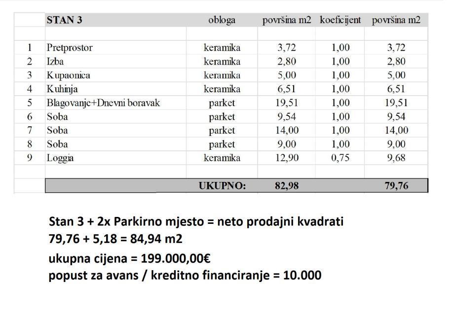 Prodaje se stan u novogradnji s pripadajuća dva parkirna mjesta.