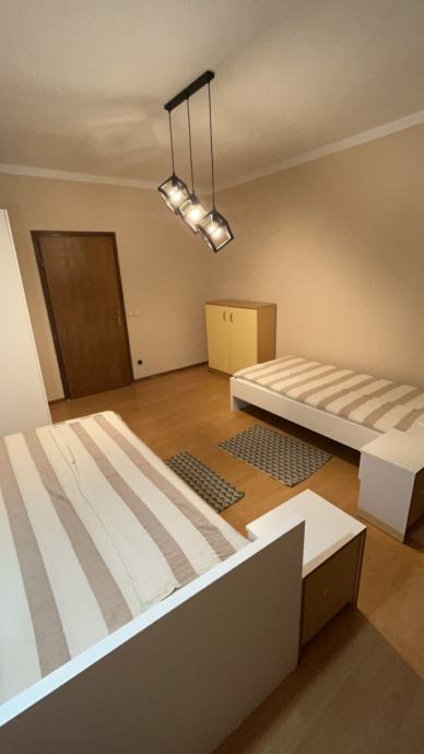 Iznajmljujem potpuno namješten stan u centru grada kod gradskog bazena, a sastoji se od hodnika, dnevnog boravka, kuhinje, WC-a i kupaonice te balkona. Stan ima optički internet te Max TV. Nalazi se na prvom katu objekta, te je osiguran parking za dva vozila. Najamnina iznosi 800 EUR mjesečno u koje su uključeni i režijski troškovi i plaća se na početku svakog mjeseca. Prilikom useljenja plaća se i polog u iznosu jedne mjesečne najamnine, koji se vraća pri razduženju stana. Sklapa se ugovor o najmu na minimalno godinu dana uz prijavu Poreznoj upravi.
