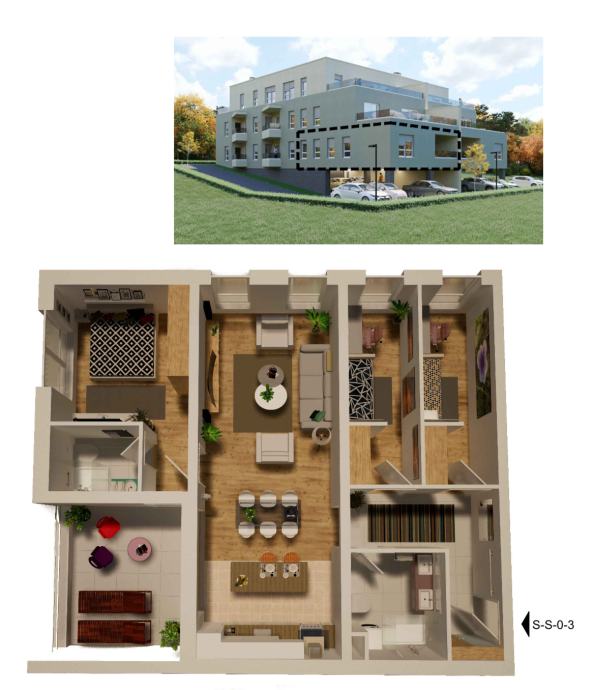 Planira se izgradnja 2 zgrade sa ukupno 17 stambenih jedinica veličine 48m2 - 96m2., pogledom orjentirane na gradske bazene i zeleni prostor Levijevog brijega.