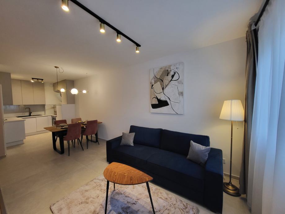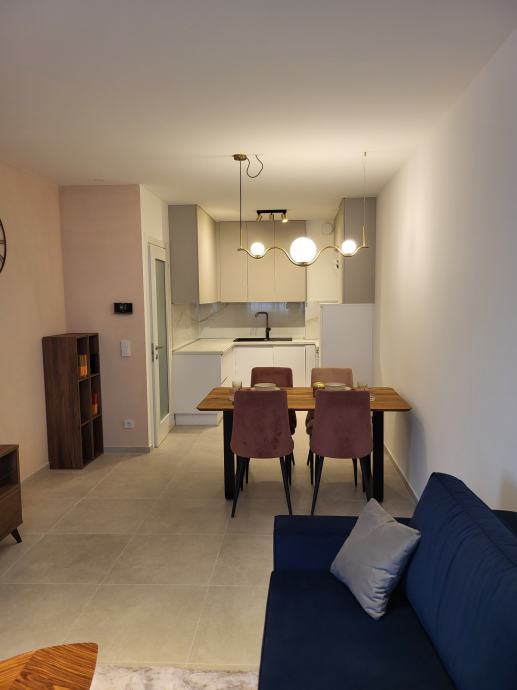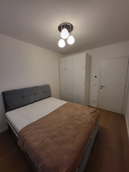 Iznajmljuje se potpuno nov stan površine 49m² + loggia u novogradnji (2025.), moderno uređen, sa unutarnjim spremištem i unutarnjim garažnim parkirnim mjestom (podzemna garaža), prvi najam, u stanu još nitko nije boravio.