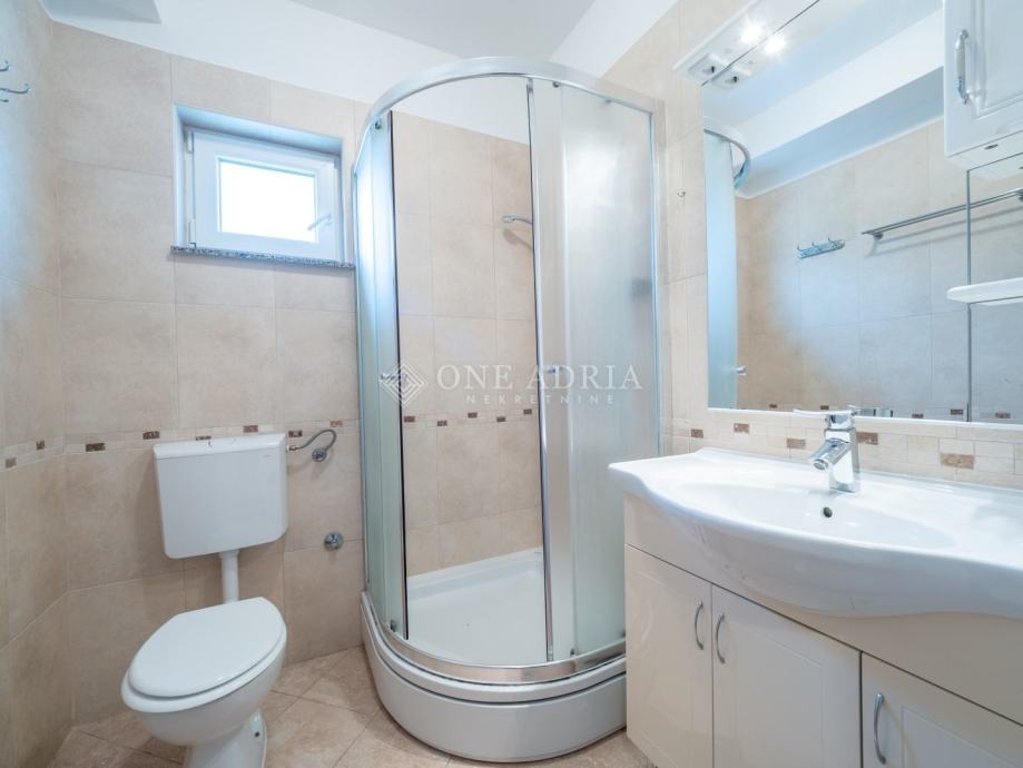Uz stan dolazi i vlastito parkirno mjesto, a okruženje je mirno, uredno i lako dostupno. Blizina plaže, trgovina i ostalih sadržaja čini ovu nekretninu praktičnim i atraktivnim izborom za život ili odmor.