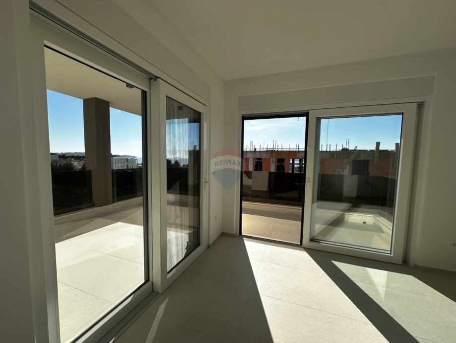 Stan se sastoji od ulaznog prostora, kuhinje, blagovaonice i dnevnog boravka u open-space konceptu, tri spavaće sobe, od kojih jedna ima vlastitu kupaonicu, dodatne kupaonice te izlaza na terasu površine cca 20 m² s koje se pruža pogled na more.