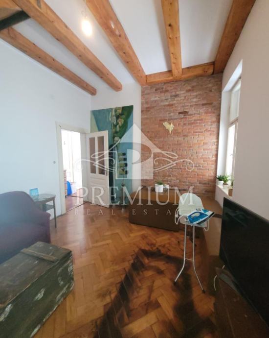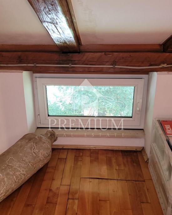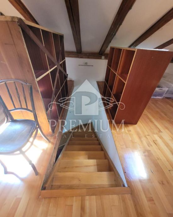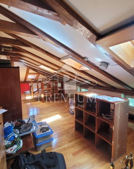 na donjoj etaži (1. kat) imamo dnevni boravak, spavaću sobu, kuhinju s blagovaonicom i dvije terase (ukupne veličine 15 m2) te kupaonicu. Unutarnjim drvenim stubištem dižemo se u spavaći dio gdje su trenutno dvije spavaće sobe spojene u jedan jedinstveni prostor sa svojom kupaonicom. Taj gornji spavaći dio je smješten u pokrovlju (krovište i grede su u dobrom stanju).