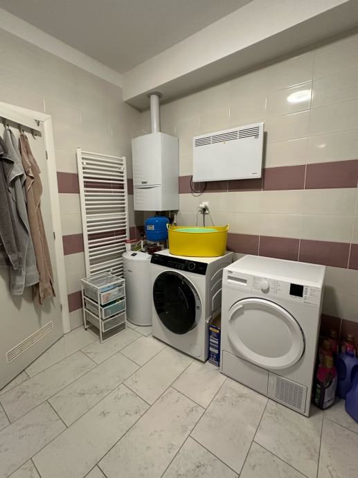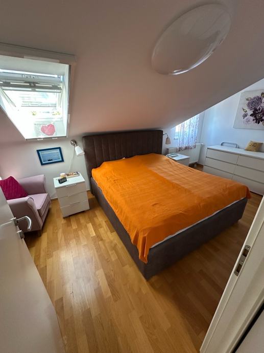 Stan je klimatiziran sa dvije inverter klime,grijanje plinsko etažno sa spremnikom tople vode i digitalnim termostatom,Pvc stolarija,krovni Velux Pvc prozori sa roletama i komarnicima,podovi parket i keramika.