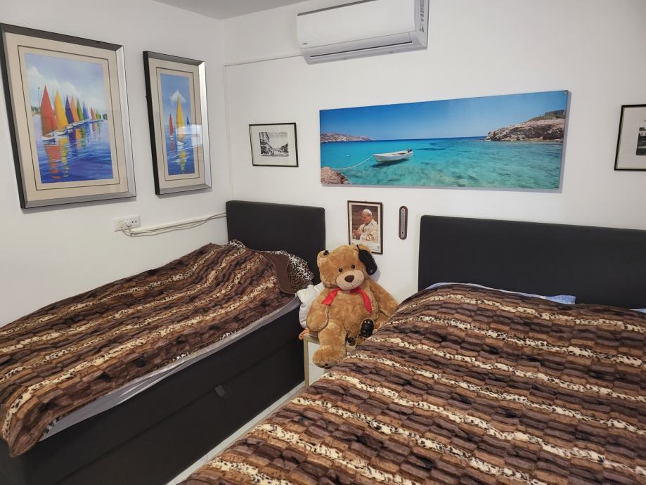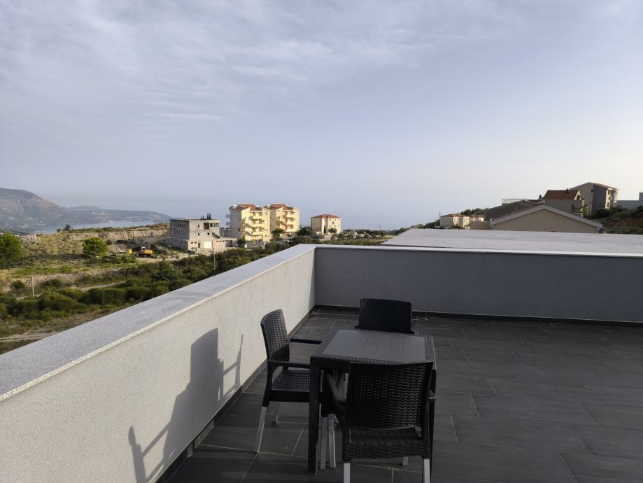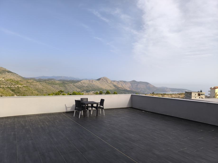 Novi 2 (dvo)sobni komforni stan (od ukupno 6)iznad garaža odmah(visoko prizemlje)-dovršen siječanj 2022 godine u zgradi na Ivanici(500m,iznad Brgata Donjeg)-pozicija iza granice BiH gore na brdu(ima 100metara zračne linije do hrvatske granice )-Hvata se signal za hrvatski mobitel,i ima antena na vrh zgrade,za hrvatsku televiziju,ili Evo TV.U cijeni je sav kompletni namještaj itehnika osim slika. Spavaća soba od 14m2 s ugradbenim velikim ormarom,a DB je 40m2 s blagavonicom,kuhinjom po mjeri,i zabavnim dijelom,5m2kupatilo,i predsoblje s ormarom-5m2.Terasa od 120m2(20m2 je u vašem vlasništvu-ali možete koristiti cijelu terasu-pošto svi "borave" na bazenu -koji ima također terasu od cca 100m2),na vrhu zgrade,s koje se vidi Župski zaljev s otocima i Cavtat.Bazen je dosta velik (8x4)-suvlasništvo.Plus vanjsko parkirno mjesto,i jedno u garaži u suvlasništvu.garaža u vlasništvu!!Podno grijanje u kupatilu,i zidna grijalica turbotemp,bojler 80litara,u DB bambusov parket 1.klase visoki sjaj,zid od cigle jedan u dnevnom boravku,led rasvjeta po cijelom stanu,i cjelonoćno svjetlo led u stubištu,koje je zatvoreno--Jedina zgrada na Ivanici s zatvorenim stubištem,inox ogradom,i kamenim stepenicama.Dva klima uređaja inverter(hladi i grije) 3,5kw u DB,i 2,0kW u spavaćoj sobi !Rolete su sve na struju i imaju komarnici na svim prozorima!Struja je 40% jeftinija na Ivanici nego u Dubrovniku,i imate plaćeni 10kw priključak vlastiti,i trofaznu struju--dobro za električne aute za punjenje u garaži(mogu svi električni uređaji odjednom biti uključeni,i neće doći do iskapčanja i prekida rada-izbacivanje sklopke).Betonska galanterija po cijeloj okućnici,ograda i asfalt do zgrade!Stan ima svoj sat od struje i svoj priključak struje,i sat od vode kontrolni.Izolacija i fasada su vrhunske(8cm stiropor je stavljan ispod fasade--grije se zimi s klimom na 23-25C-a još je stan orijentiran na jugoistok.Do Dubrovnika ima 8km,i do Župe-Sub city-10km,do G.Brgata 2km.Znači 10-15min.vožnje s vozilom(kada nema gužve)do Grada(Ilijina Glavica) ili Centra Župe!Prednost velika ove nekretnine,je što su ostali suvlasnici 10(deset)mjeseci odsutni,a samo 2(dva) mjeseca ukupno godišnje koriste svoje stanove.Suvlasnici žive u Švedskoj već 30ak godina,pa zadovoljavaju minimalne kriterije "civiliziranosti"!!