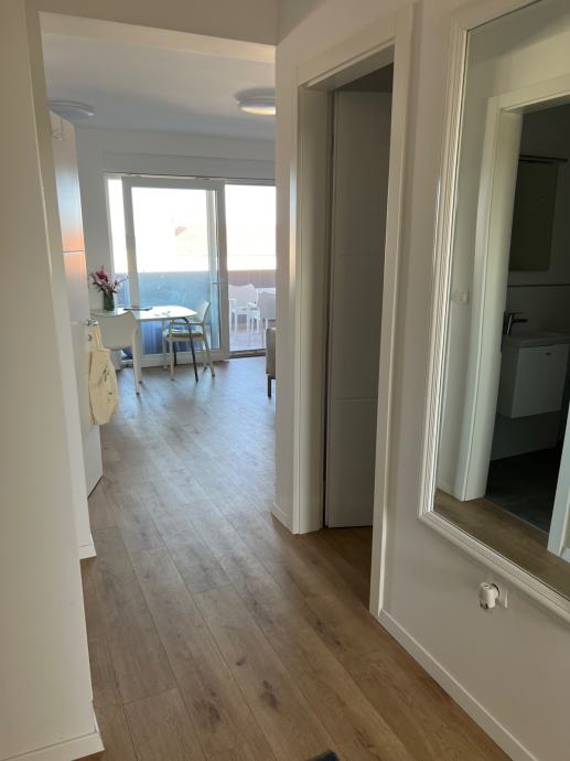 Prodajem lijep, prostran i svijetao stan - apartman na drugom katu urbane vile, udaljene svega oko 150 m od mora. Stan ima veliku lođu s pogledom na more i obližnje otoke, dvije spavaće sobe, kuhinju povezanu s open-space dnevnim boravkom, odvojeni WC te kupaonicu s velikom tuš-kabinom, umivaonikom i dodatnim WC-om.