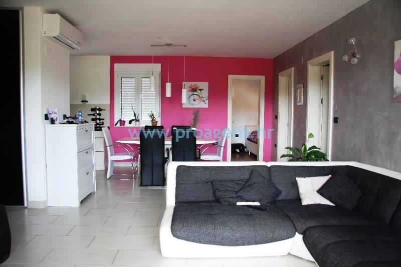 Kvalitetno uređen stan korisne površine 69,74 m2 nalazi se na 1. katu stambene zgrade i sastoji se od hodnika, kuhinje sa blagovaonom, dnevnog boravka i natkrivene terase, dvije spavaće sobe i kupatila. Stanu pripada ostava u podrumu netto korisne površine 5,07m2 i parkiralište pored zgrade.