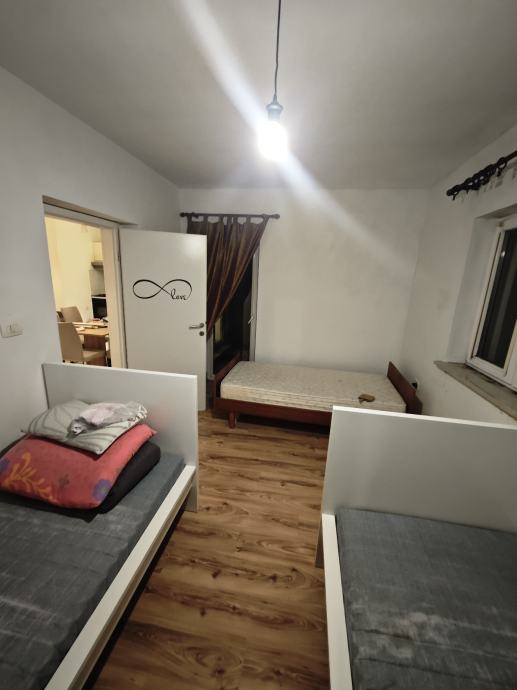 Četvorosoban stan, 80 m², tri spavaće sobe, dnevni boravak sa kuhinjom, vanjski kamin, parking