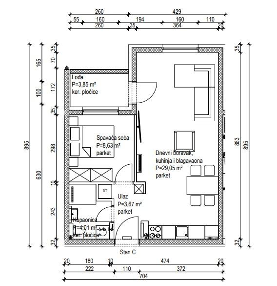 Uz stan je obavezna kupnja vanjskog ili garažnog parkirnog mjesta.