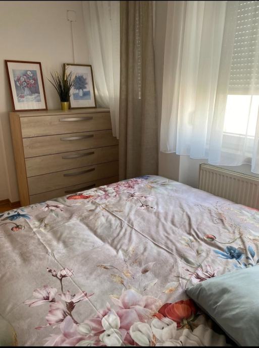 Daje se u najam stan od 45 kvadrata koji se nalazi u strogom centru grada (soliter kod placa). Potpuno je energetski obnovljen, u potpunosti adaptiran, sve je novo, svi kućanski aparati i namještaj. U potpunosti je sve opremljeno za živjeti sa svime što treba u jednom domaćinstvu (posuđe i mali kućanski aparati). Stan se sastoji od spavaće sobe, dnevne sobe, kuhinje, kupaone, hodnika i posebne prostorije s vešmašinom. Stan se nalazi na 4. katu pa su troškovi održavanja (grijanje i hlađenje) minimalni. U zgradi se nalaze 2 nova lifta. U obzir dolaze stanari koji su zainteresirani za dugoročan najam, dakle ugovor na minimalno godinu dana. Cijena najma je 600 eura mjesečno + režije. Stan je useljiv odmah. Polog je 1200 eura (2 najamnine). Za sve informacije isključivo zvati na broj telefona: +385996973000, na poruke ne odgovaram.