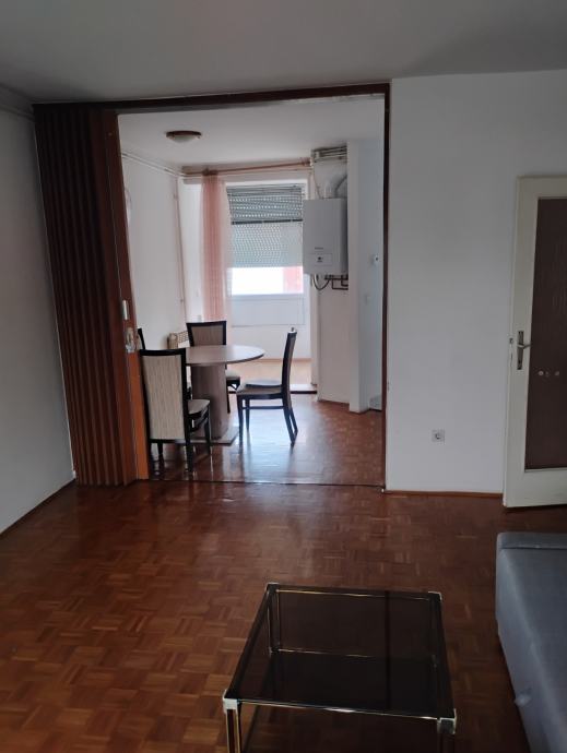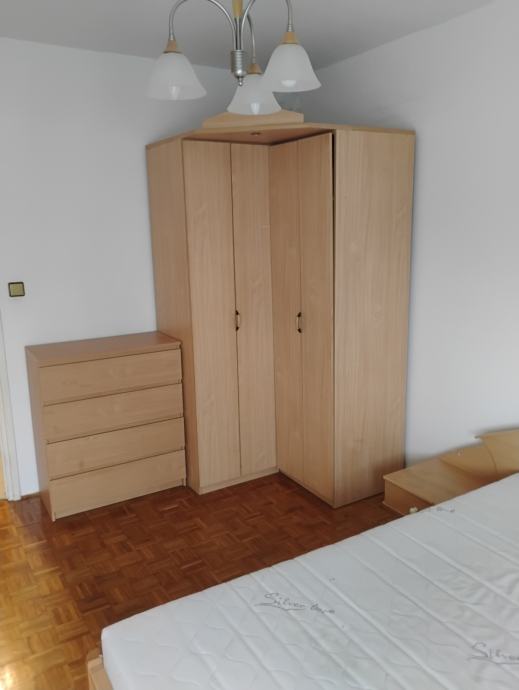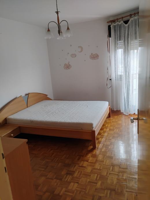 Stan se sastoji od dnevne sobe sa blagavaonicom, spavaće sobe, jedne manje sobe (može biti radna), kuhinje, ostave, kupaonice, te balkona. U prizemlju je malo spremište, te prostor za bicikle. Stan se nalazi na odličnoj lokaciji, odmah preko parka Zrinski, blizina škole, vrtića, banke. Stan je potpuno namješten, sa perilicom rublja i velikim hladnjakom. Svaka veća soba ima svoju klimu, a ulazna vrata su protuprovalna. Ima centralno grijanje sa novim kondenzatorskim bojlerom. Stan je vrlo uredan,čist, a sama zgrada dobro održavana. Režije grijanja su vrlo niske zbog dobrog položaja stana. U stanu nisu dozvoljeni kućni ljubimci, niti druge životinje. Pogodan je za mladi zaposleni bračni par sa stalnim primanjima ili studentice (dvije ili tri koje dijele ukupnu cijenu najma).