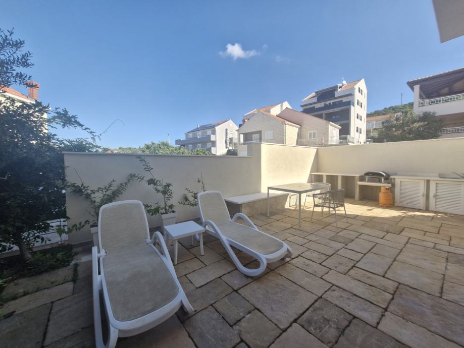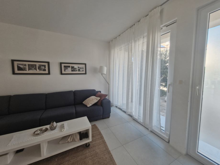 We present a beautifully designed apartment located on the ground floor of a building in one of the most desirable areas of Cavtat. With a total area of 77 m² and 35 m2 of garden terrace, the apartment consists of three comfortable bedrooms, a spacious kitchen connected to the living room, two terraces perfect for outdoor living and barbecuing, a storage room, and a private parking space.