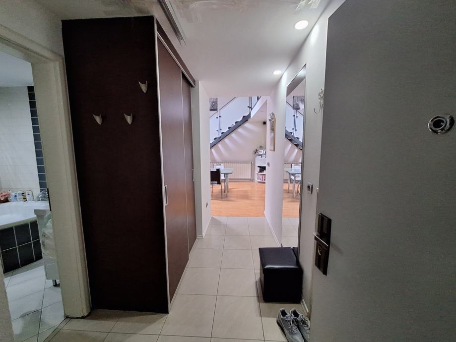Stan je odličnog rasporeda, prostran, s puno prirodne svjetlosti, na zadnjem katu s iskorištenim potkrovljem.