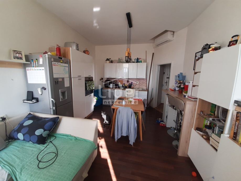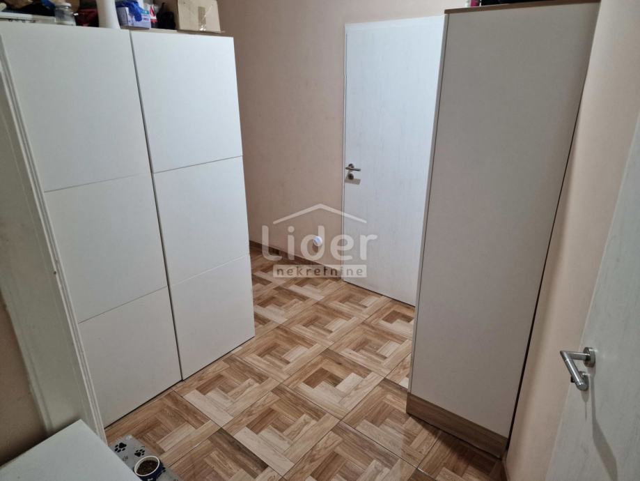 Centar, 2-soban stan sa pogledom na more. Nalazi se u poslovno-stambenoj zgradi, nadomak Korza. Sastoji se od dvije spavaće sobe, hodnika, kupaone, kuhinje s dnevnim boravkom, te dvije izbe odvojene od stana odmah preko puta na glavnom hodniku neposredno uz stan, od čega jedna ostava ima dovod i odvod koje se može staviti u funkciju pa time imati vešeraj neposredno uz stan.