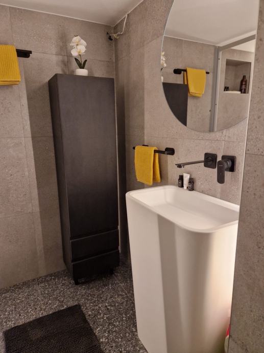 Iznajmljuje se dvosobni stan od 40m2 u zgradi sa korištenjem zajedničkog uređenog dvorišta.Prvi najam,grijanje podno i klima.Stam u potpunosti namješten.