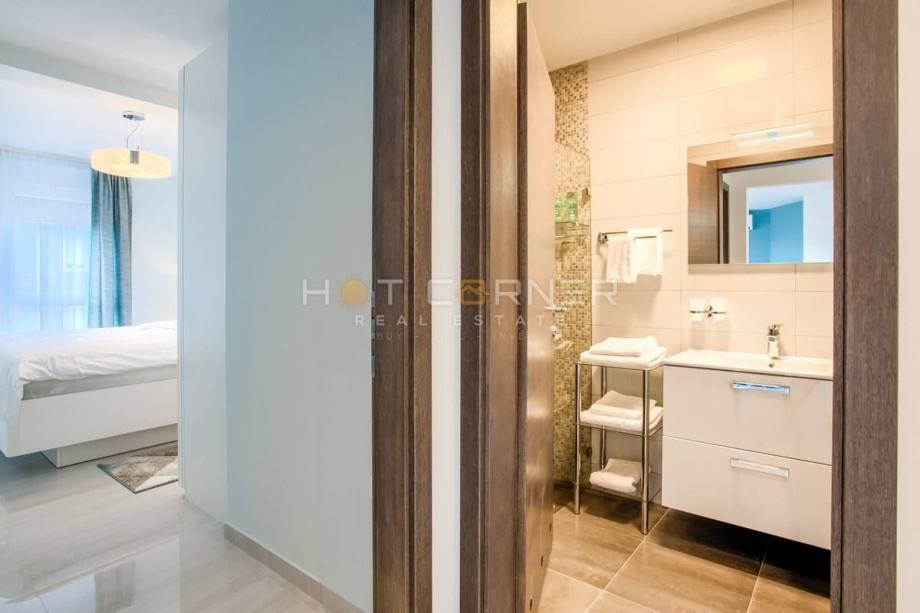 Stan obuhvaća spavaću sobu, kupaonicu, spremište s perilicom i sušilicom, otvoreni dnevni koncept koji spaja kuhinju, blagovaonicu i boravak s izlazom na veliku terasu – savršenu za uživanje u toplim danima + dodatno spremište.