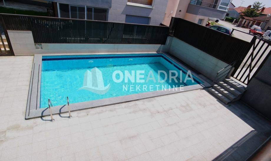 PULA, MONTE MAGNO U ponudi agencije je stan u prizemlju zgrade, sa 3 spavaće sobe, dvije kupaonice, kuhinja s blagovaonicom, te dnevnim boravkom. Korištenje bazena u dvorištu zgrade. Parkirno mjesto u zajedničkoj garaži. Stan je osvjetljen, odličnog rasporeda prostorija, termozoliran. Centralno grijanje. Autobusna stanica i trgovine