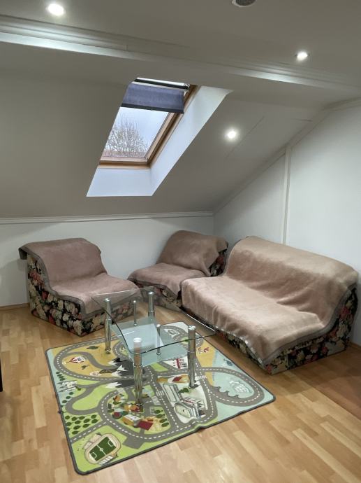 Stan u centru Bjelovara, Trg hrvatskih branitelja. Dvoetažni stan sastoji se od dnevnog boravka, spavace sobe, 2 wc-a, kupaone, hodnika. Moguca prenamjena u dva objekta: poslovni prostor (prizemlje) i garsonjeru za stanovanje (kat).