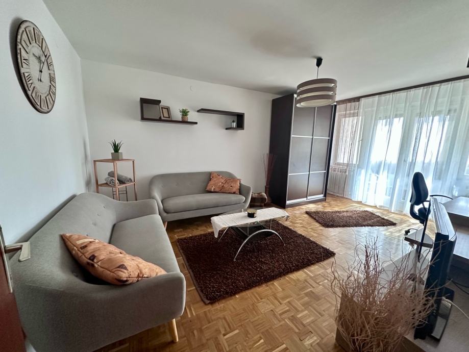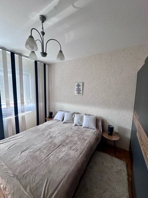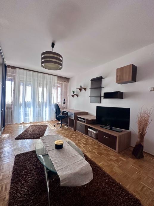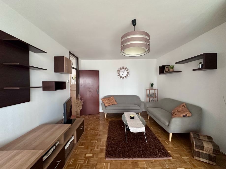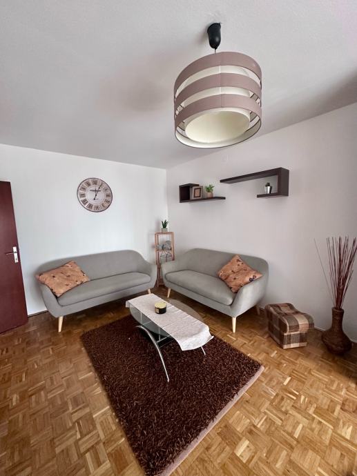 Iznajmljujem stan u centru grada, 64 m2, potpuno namješten. Stan se sastoji od dnevne sobe s lođom/balkonom, spavaće sobe, kuhinje s blagovaonicom i malom ostavom, kupaone, zasebnog wc-a i predsoblja.